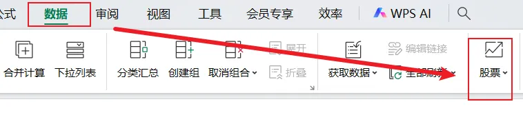 3、全选输入的代码,点击数据栏,将股票切换成基金,即可转换成对应基金