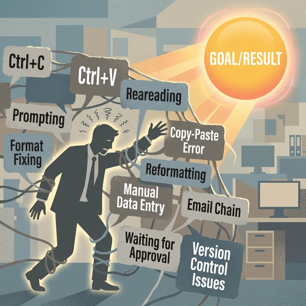 因为打开ChatGPT、复制粘贴、修改提示词、调整输出……这一套操作下来,"摩擦力"太大,大脑自动选择了"还是我自己写吧"。