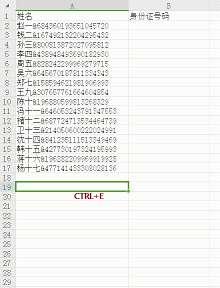 例如: 张三&684360193651045720 ,需要从中提取身份证号。- 在 B2 单元格手动输入 A2 里的身份证号: 684360193651045720