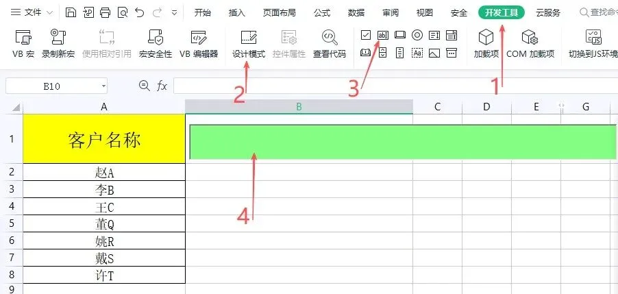 以WPS为例,打开工作表,依次点击【开发工具】,【设计模式】,选择文本框,点击工作表空白区域即可插入2个文本框,默认名称Textbox1和Textbox2。