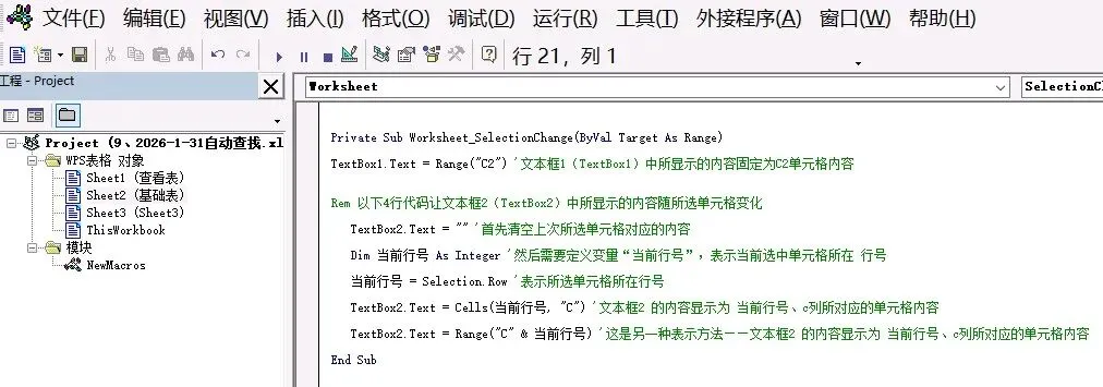 以上用到的是工作表事件代码,该类代码需要保存到工作表中,就是在VBE窗口,双击对应的工作表名称,复制代码到弹出的空白区域里。本次代码不是保存在模块中。