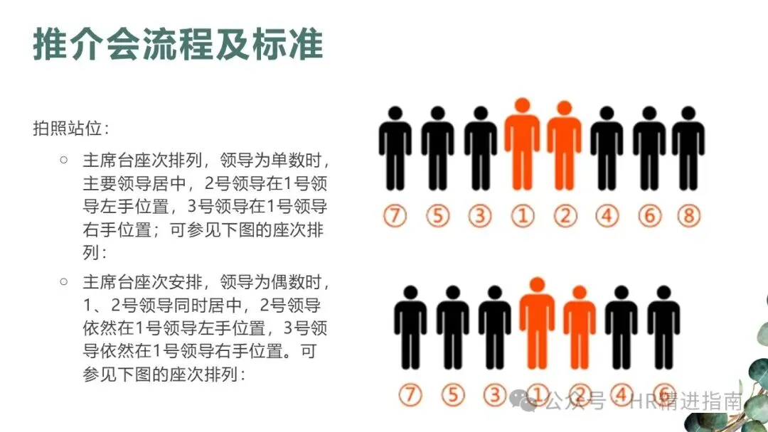 - 合影站位:与主席台座次排列原则一致,确保领导位次规范。