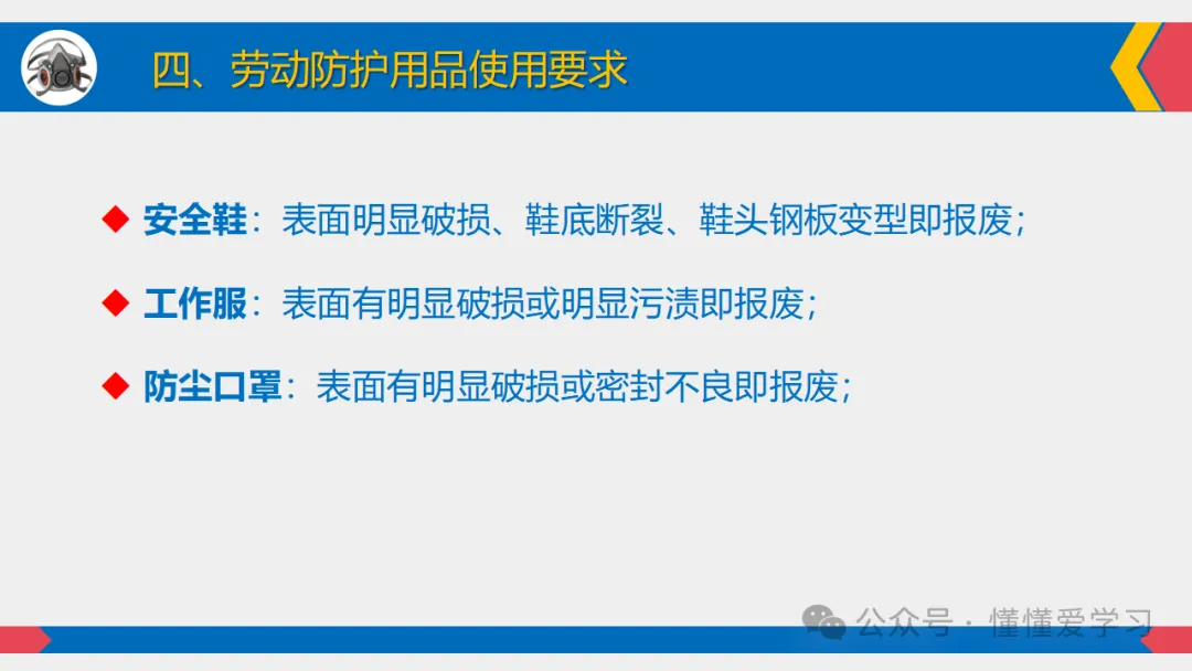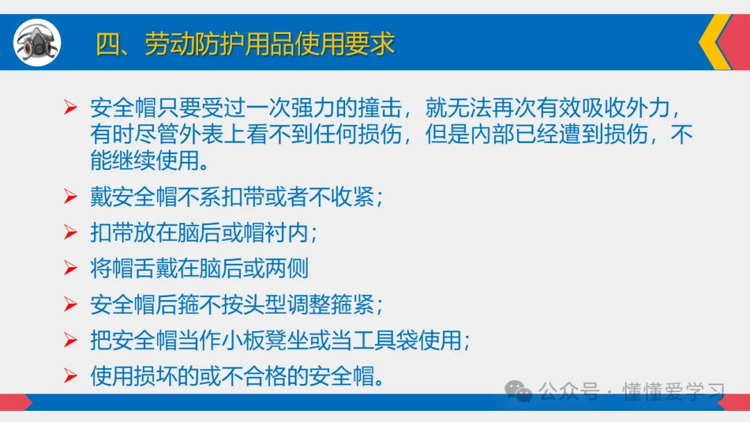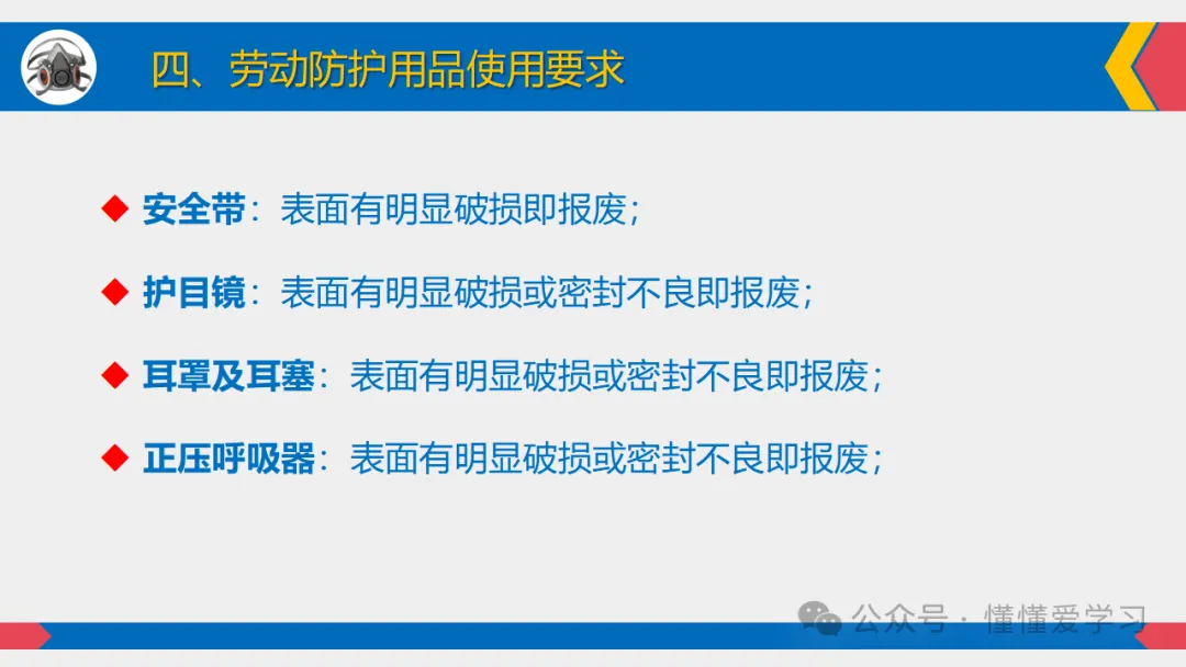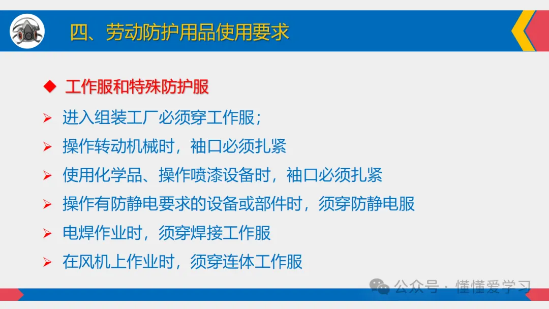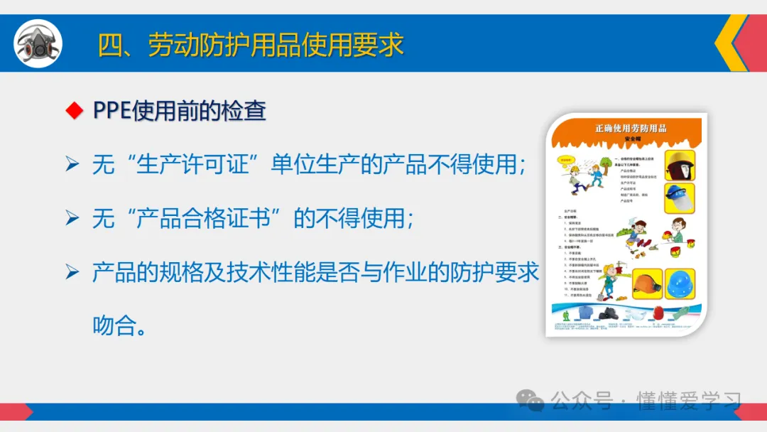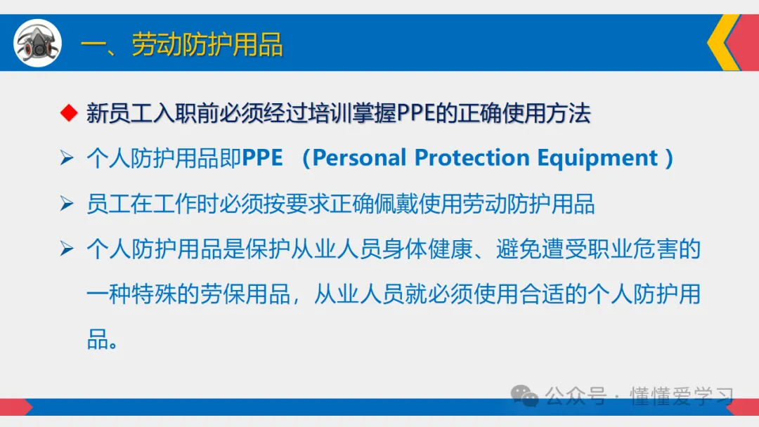 新员工入职前必须经过培训,掌握PPE的正确使用方法。员工在工作时必须按要求正确佩戴使用劳动防护用品。个人防护用品是保护从业人员身体健康、避免遭受职业危害的一种特殊的劳保用品,从业人员必须使用合适的个人防护用品。