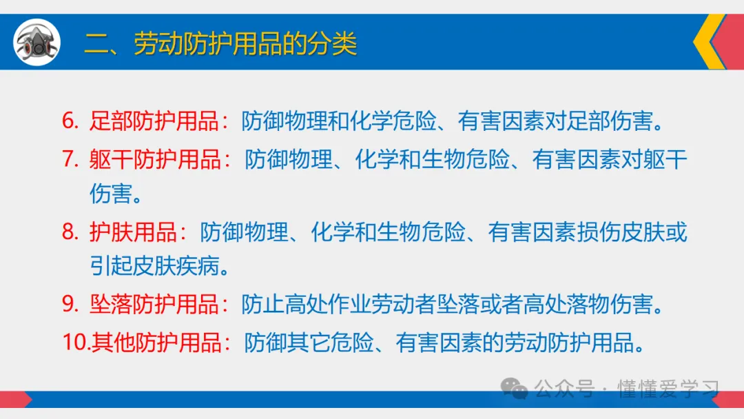 其他防护用品用于防御上述情况之外的危险、有害因素。用人单位应根据实际情况,为员工配备必要的劳动防护用品。
