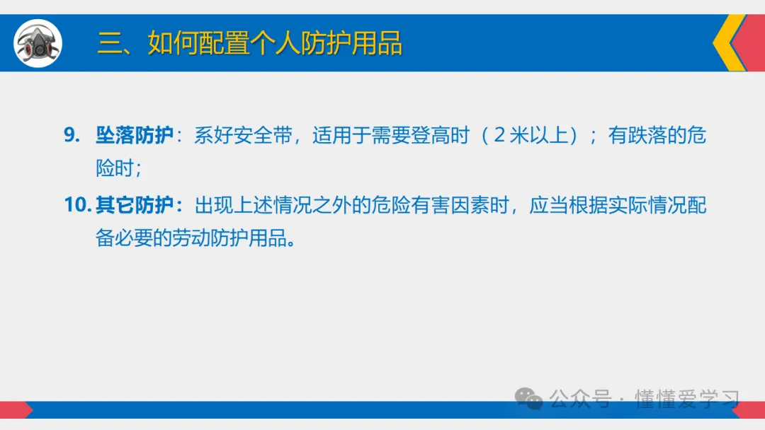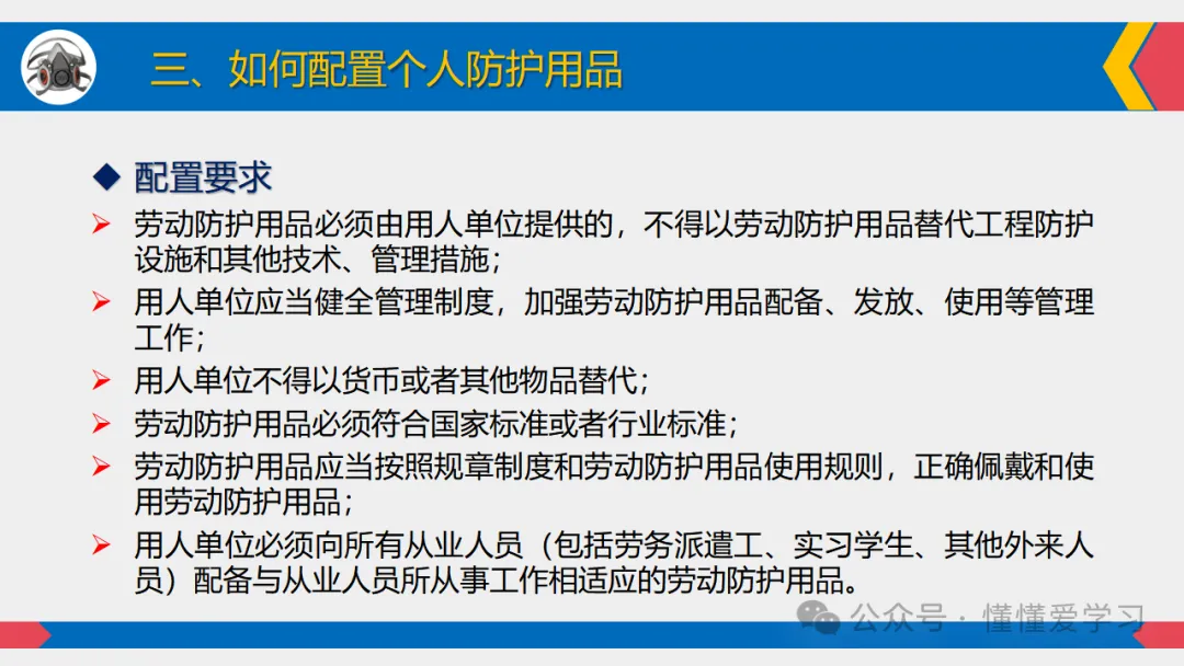 用人单位在配置个人防护用品时,必须遵循以下要求: