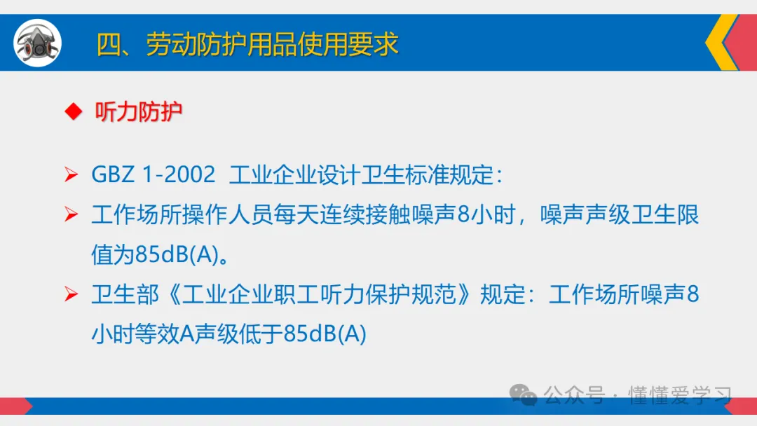 听力防护用品用于防噪声危害及防水、防寒等。根据《工业企业职工听力保护规范》,用人单位应选用合适的护耳器,并提供适当的通讯设备,以保护员工的听力健康。