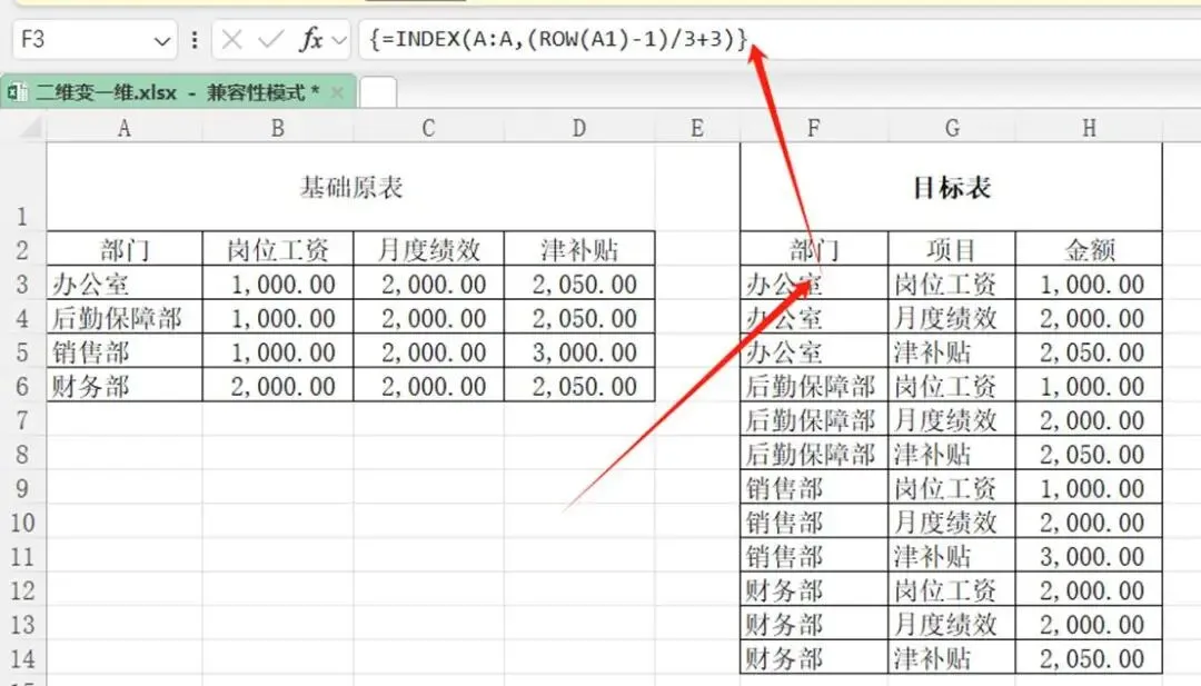 这里就可以先用上面的公式将行标签(“区域”列)变成一列。