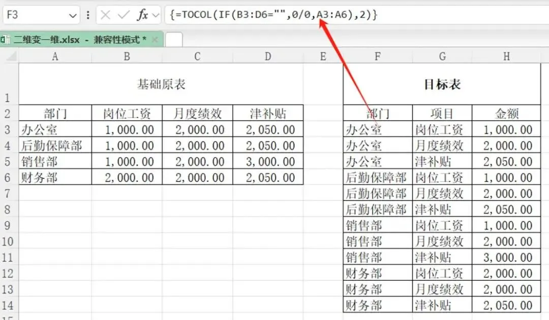 Tocol函数是excel新函数,个人觉得非常方便,值得推荐!!