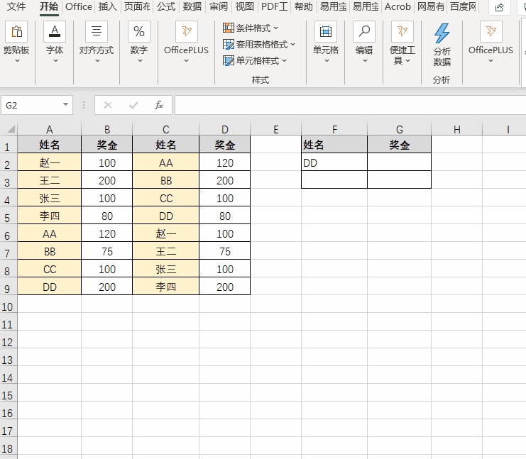 在同一个报表中,相同参数求和,除了手动选择相加,有一个简单的公式sumif函数。看图示例:公式用法:=sumif(条件区域,指定条件,求和区域)其中“指定条件”,除了固定内容外,还有一些范围指定,例如:在上图中,公式即变为:=sumif(A:A,<>F2,B:B)返回结果为:除了DD(F2内容)以外的所有人奖金之和;在上图中,公式即变为:=sumif(B:B,“>100”)在上图中,公式即变为:=sumif(B:B,"*",C:C)