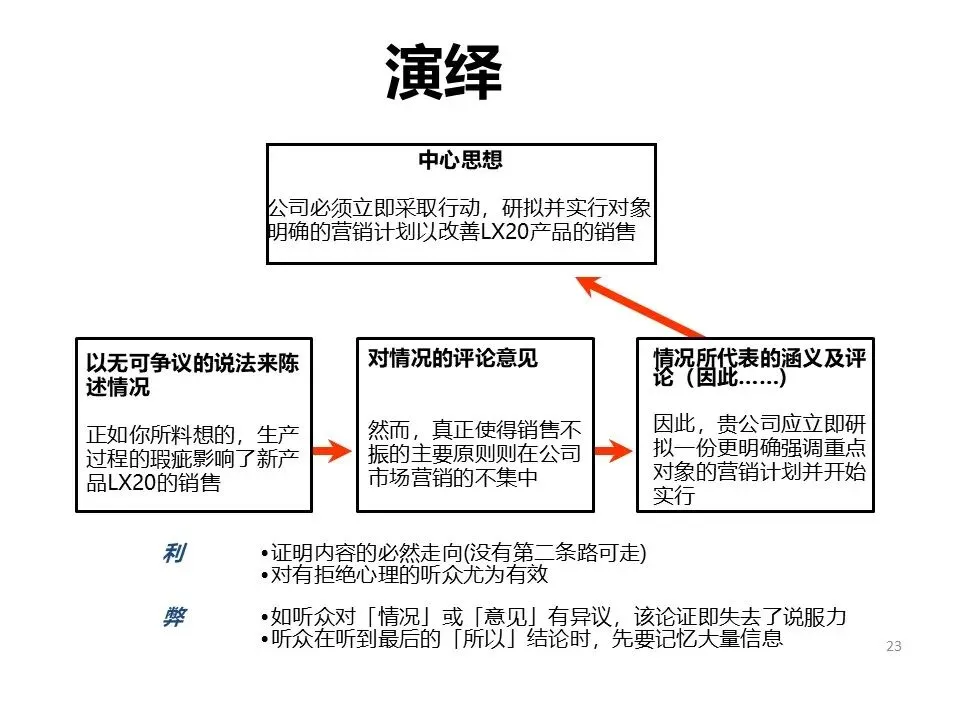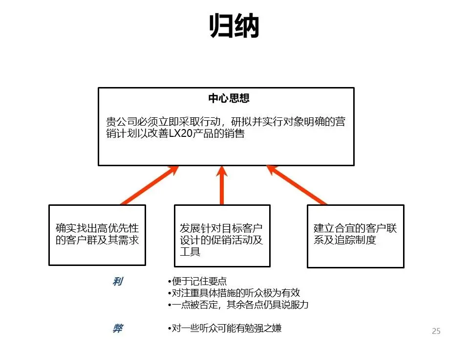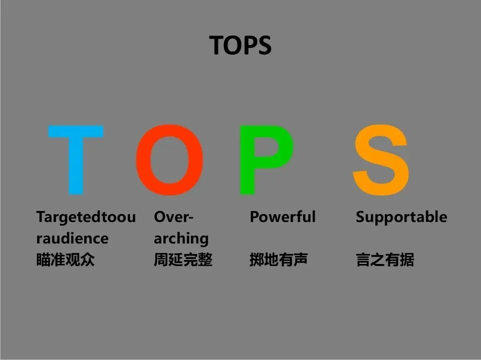 TOPS原则让观点瞄准受众、掷地有声;逻辑排布则需根据场景选择归纳或演绎法,归纳法适合快速汇报,演绎法适合说服他人。