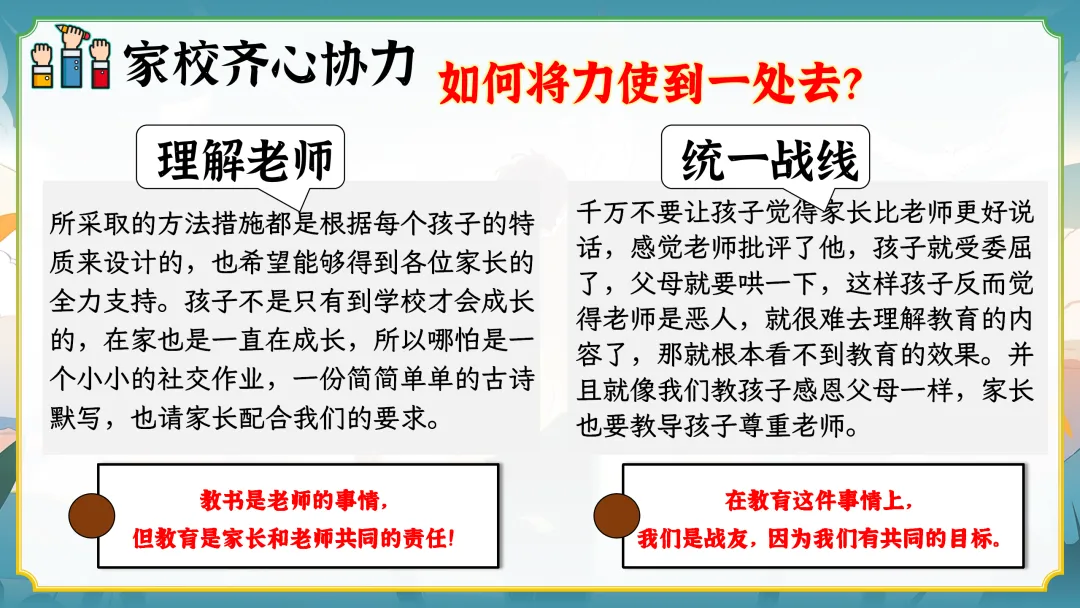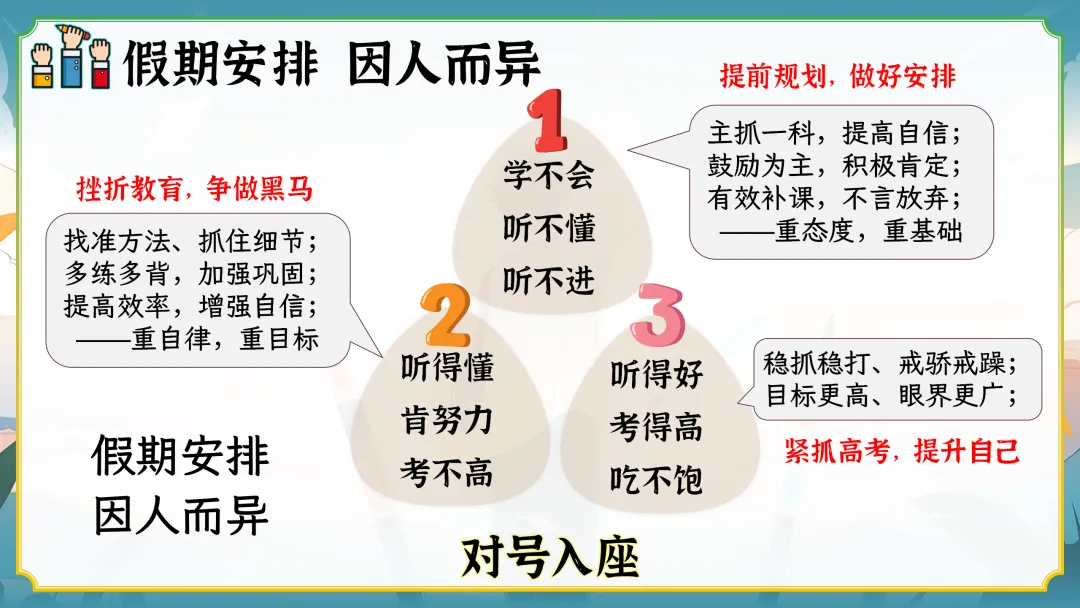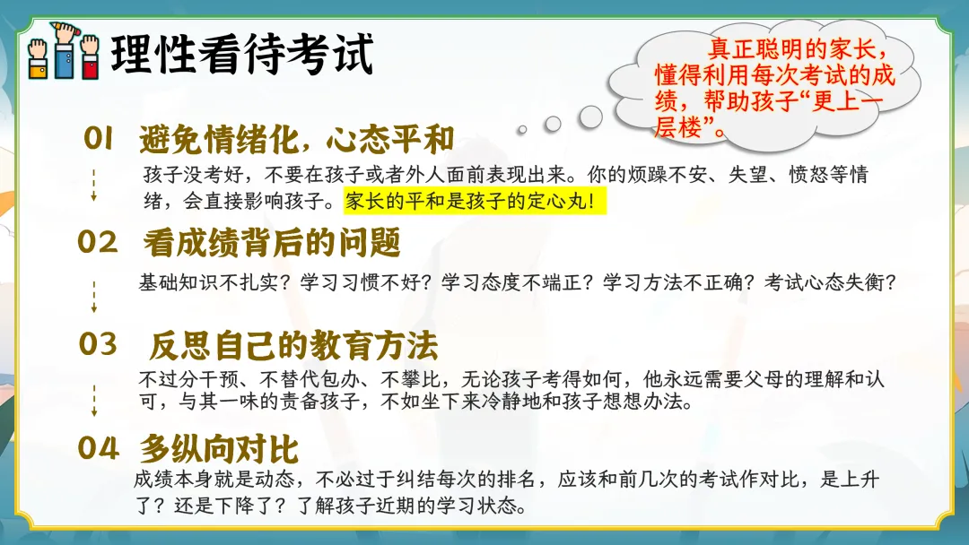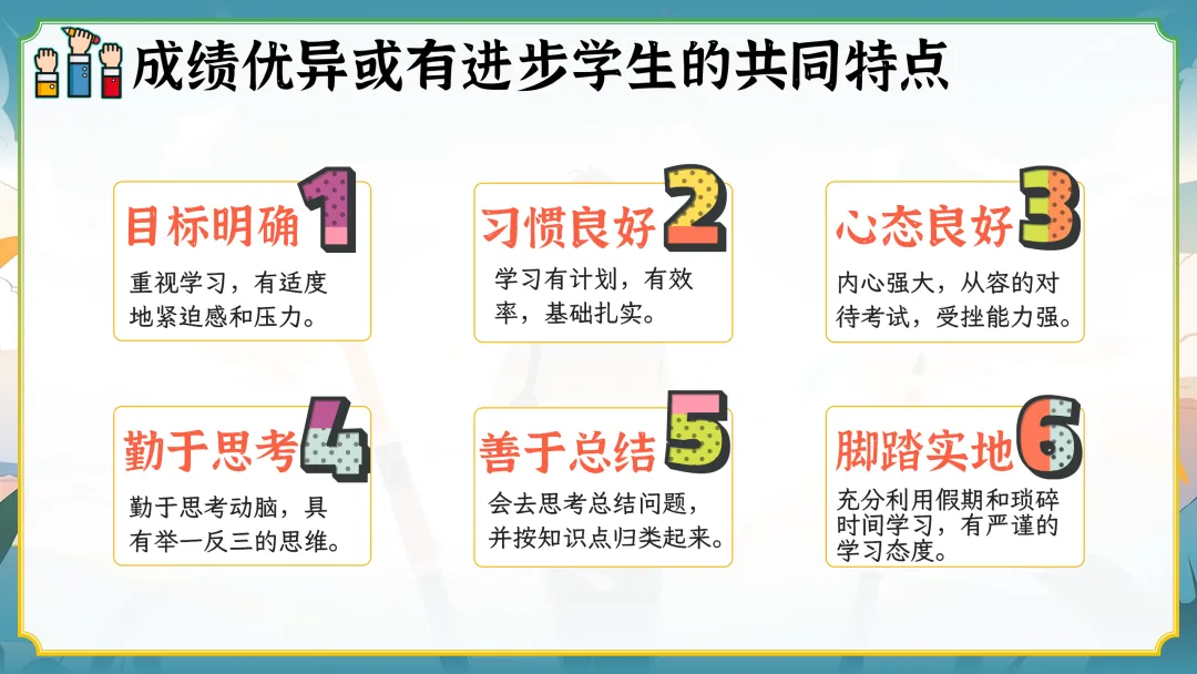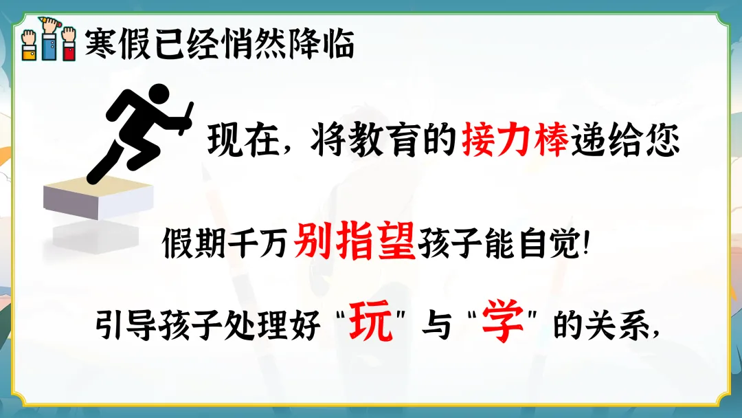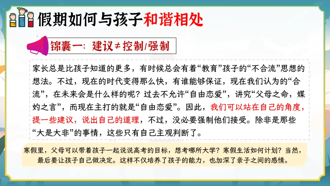此次家长会主要内容分为4大点:01学情总结:现状要清晰;02考情分析:归因要精准;03智慧陪伴:教育有方法;04科学规划:寒假有计划。