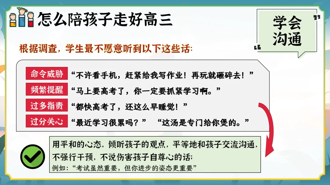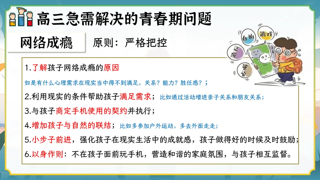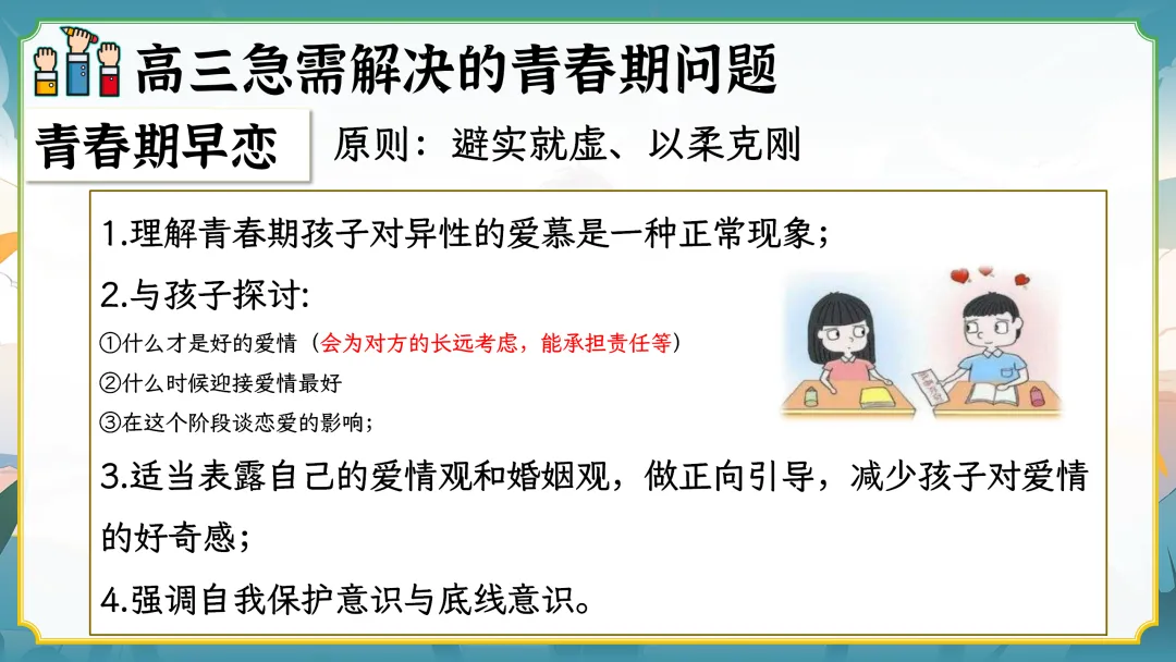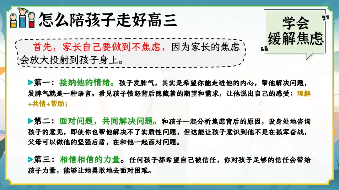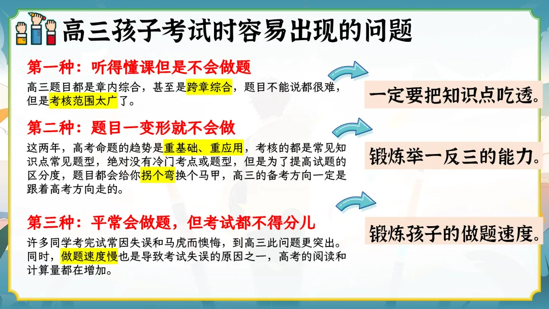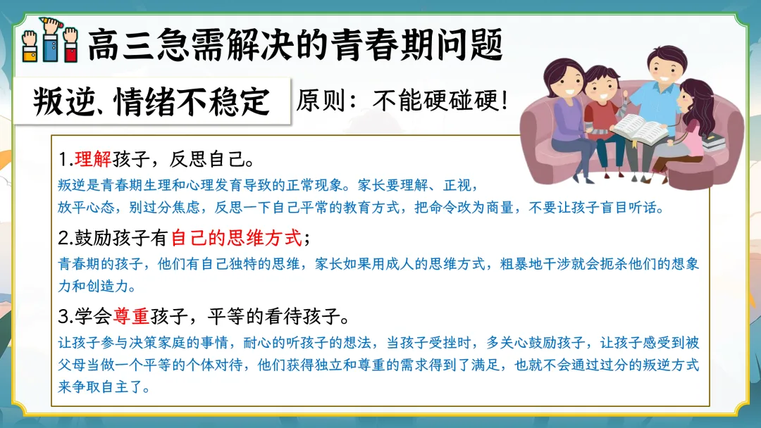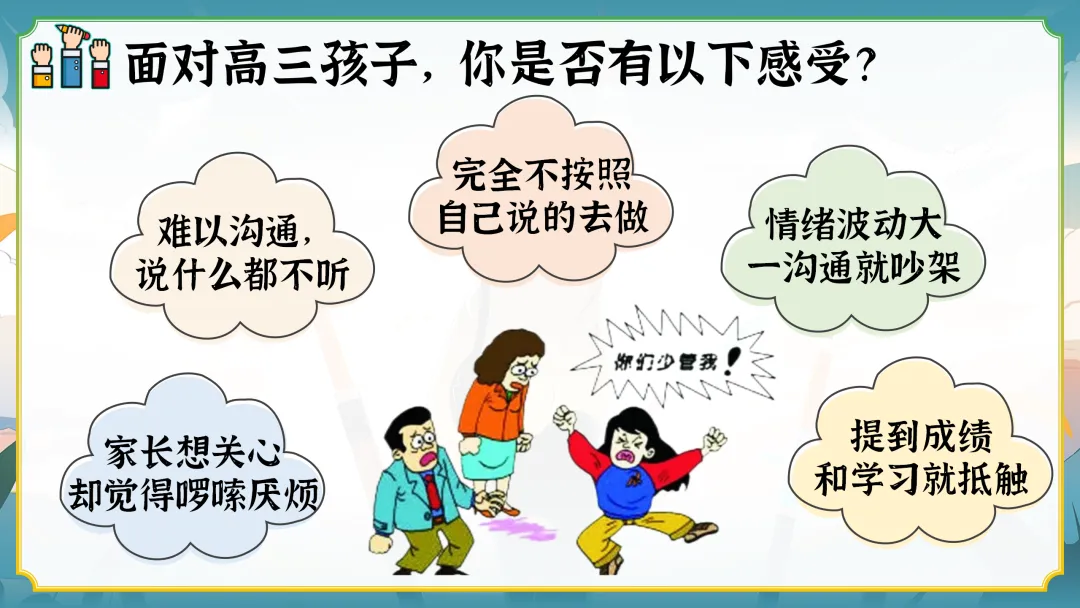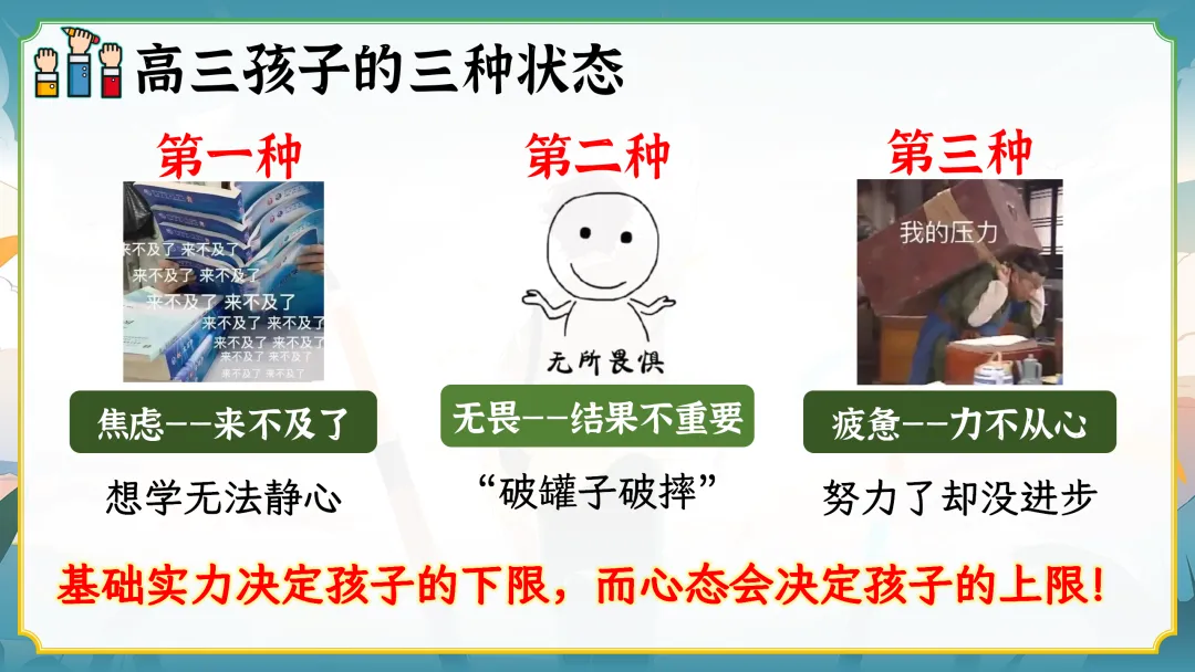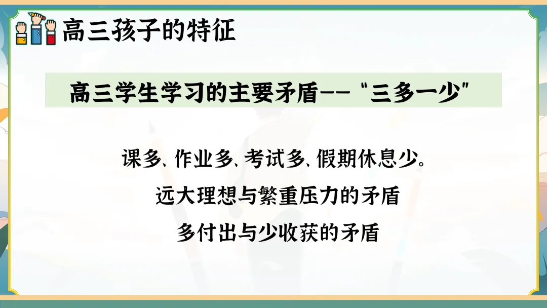 高三最后半年了,压力那么大,孩子肯定会有问题,这问题反而是契机,针对问题解决才是重点。
