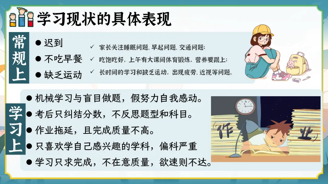 ·迟到:家长关注睡眠问题、早起问题、交通问题;