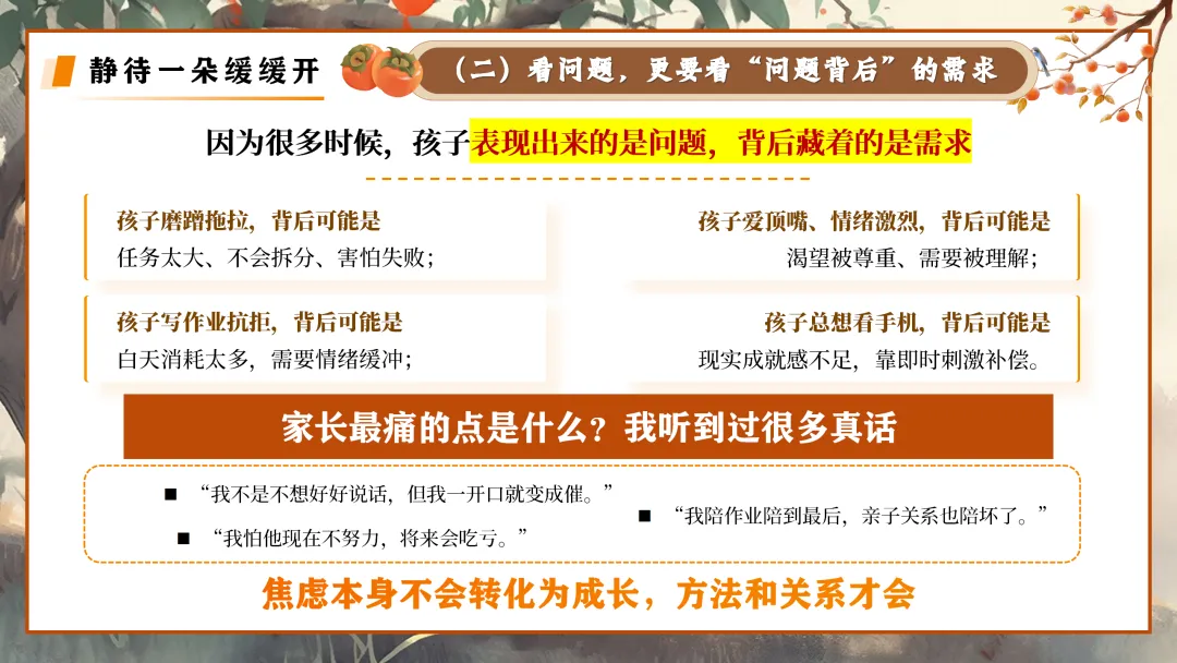 家长最痛的点是什么?我听到过很多真话:“我不是不想好好说话,但我一开口就变成催。”三、共绘一园盎然景