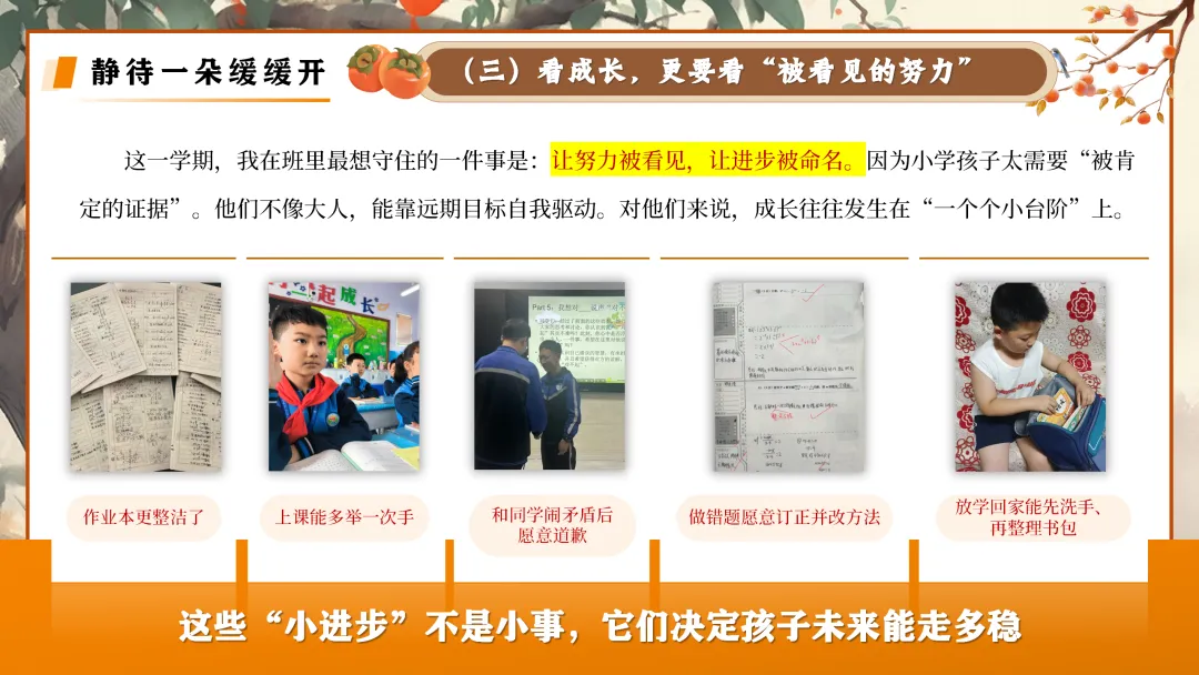 这一点我想说得更真诚:很多家长不是不爱孩子,而是太累了。下班回家还要盯作业、管手机、处理孩子情绪,有时一句话说重了,家长也会懊恼;孩子磨蹭拖拉,家长也会越焦虑。我们要帮助孩子建立一种更健康的心态:把“我不行”变成“我还在练”,把“我必须赢”变成“我可以进步”。