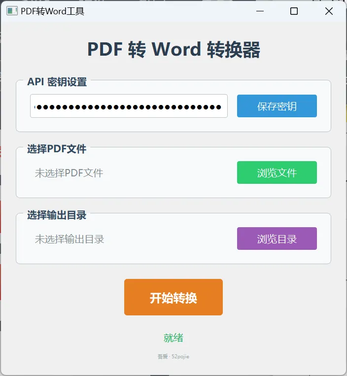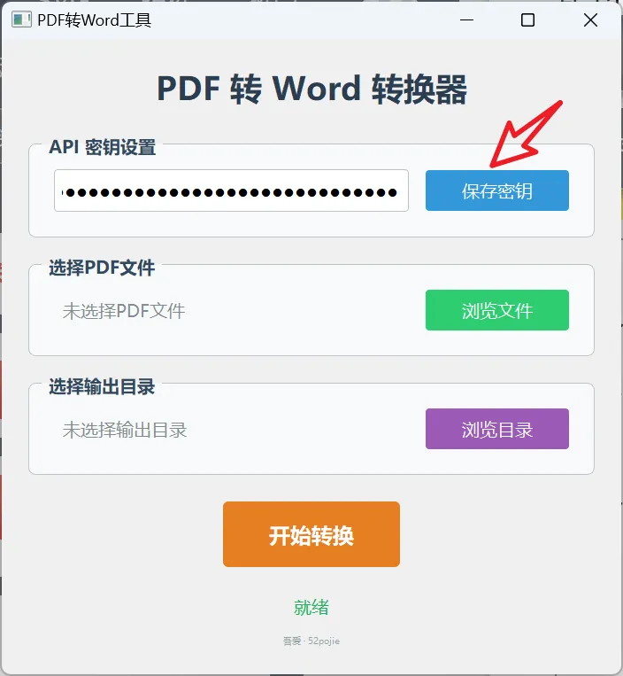 使用方面就比较简单了,选择PDF文件,再选择保存路径,最后点【开始转换】即可。