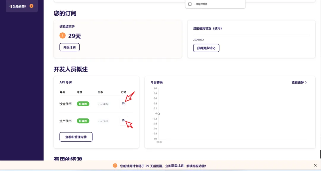 2、注册完毕,登录账号,点击【API令牌】后面的【复制】即可。