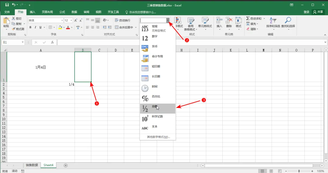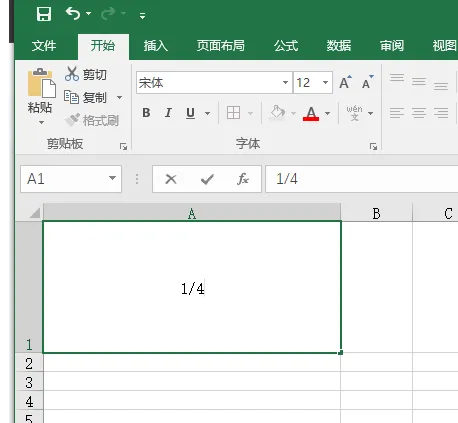 1. 常规我们在Excel中想着输入分数只需要输入“1/4”即可