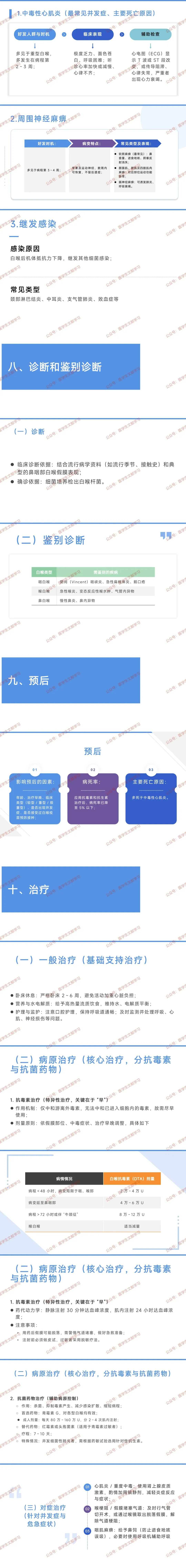 - 病死率:抗毒素 + 抗生素治疗后降至 5% 以下,主要死于中毒性心肌炎。