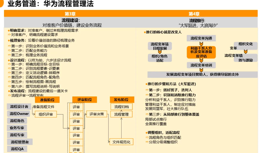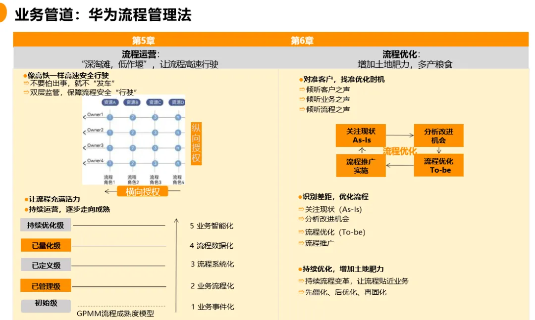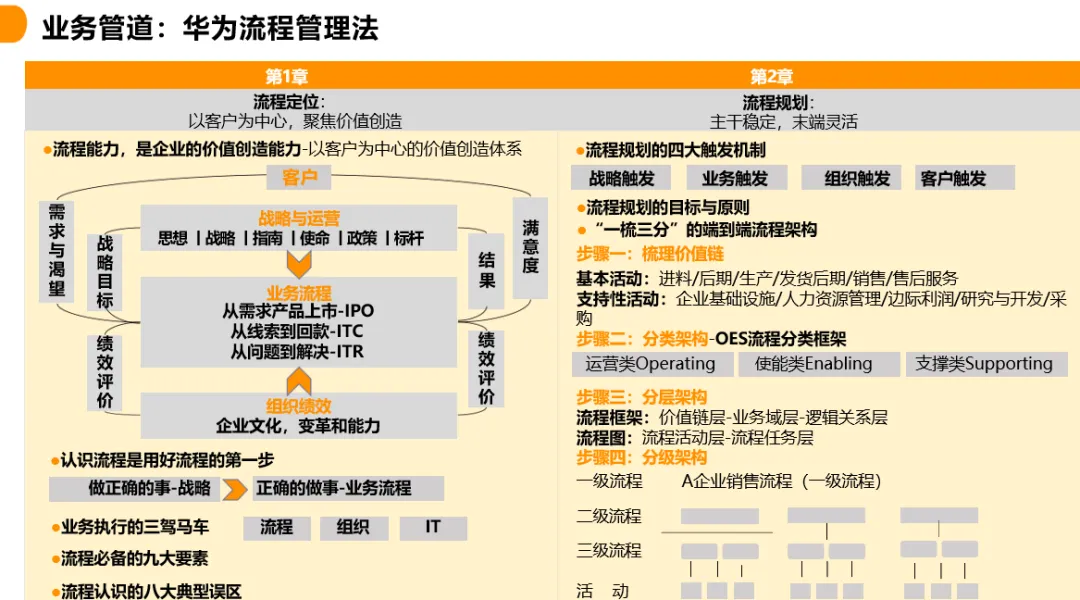 流程的本质是业务,组织力源于流程对资源的聚合效应。当流程打破部门墙,实现从客户到客户的横向贯通时,企业便摆脱了对个人英雄的依赖,走向了科学管理。华为实践表明,优秀的流程能将少数员工90分的做法固化为组织60分的基础标准,持续拉动企业能力中线上升。在数字化时代,这套"让权力归于流程"的管理逻辑,不仅为全球企业提供了可复用的方法论,更揭示了高效增长的本质:唯有将组织能力无缝嵌入业务流程,方能在不确定的市场环境中构建确定性的竞争优势。