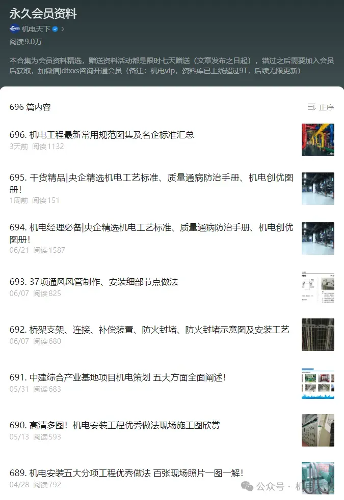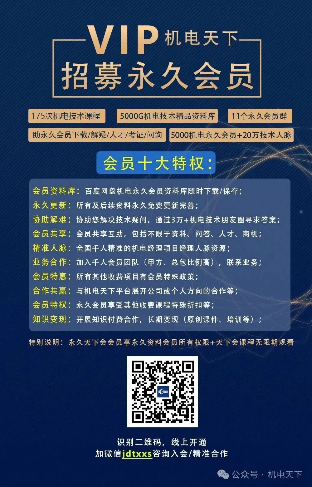 机电天下招募永久会员,通过百度网盘会员资料库得到5000G机电技术精品资料,包括了常用的规范图集、名企机电标准、机电图册、学习课件、机电方案施组、全套学习视频、机电创优.....拉入会员微信群,享受协助会员下载、协助解疑等会员服务,加微信jdtxxs咨询开通,备注:机电vip。