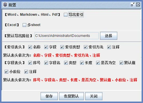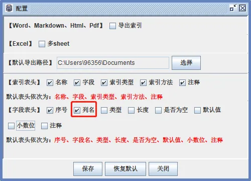 你可以决定是否显示“索引”、“外键”、“默认值”;