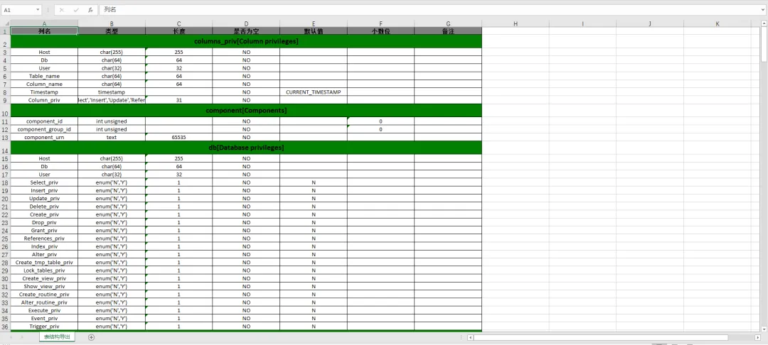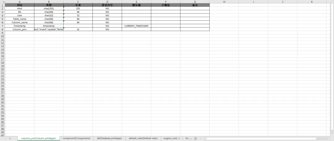 可以重命名表头,比如把 COLUMN_NAME 改成“字段名”;