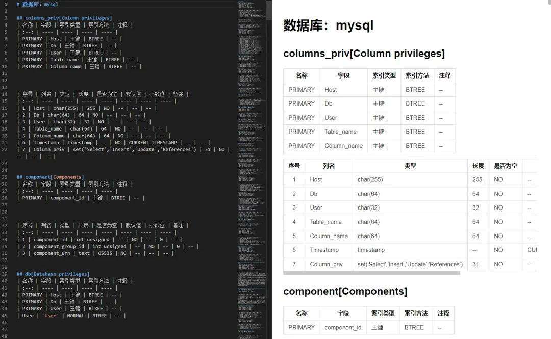 手动整理每张表的字段、类型、注释、主键、索引……平均耗时 5 分钟。