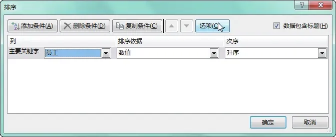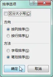 选中任意数据单元格,打开“排序”对话框,设置“主要关键字”为“员工”,并设置好“排序依据”和“次序”,单击“选项”按钮,如下图所示。弹出“排序选项”对话框,在“方法”选项区域中选中“笔画排序”单选按钮,单击“确定”按钮,如下图所示。继续单击“确定”按钮,返回工作表中,即可看到工作表中的数据会以员工姓名的笔画数从低到高进行排序,如下图所示。如果要按照某一固定的序列进行排序,则用户可自定义排序的序列,具体操作步骤如下。
