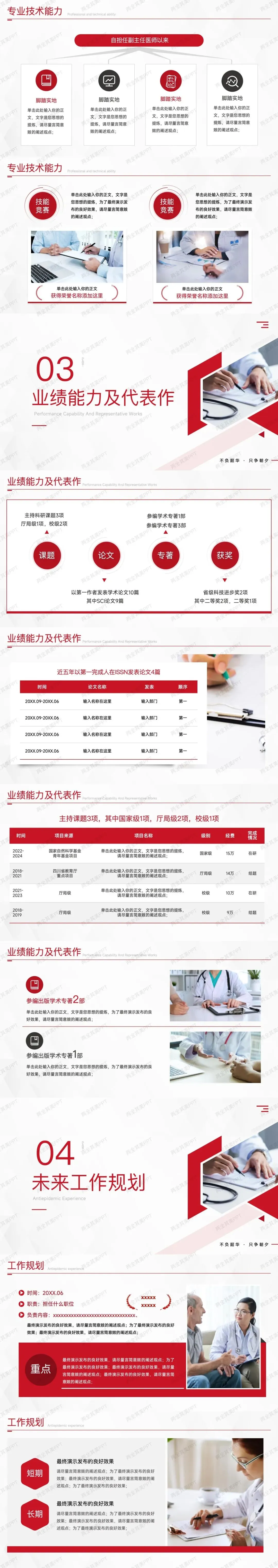 最近很多医护朋友都在问晋升正副高的职称评审答辩PPT该怎么做,这次就专门为大家准备了一套职称评定述职汇报答辩PPT模板,里面包含现成的框架、示例内容,直接参考就能用。如果你正在准备职称晋升或答辩,这份资料应该能帮你理清思路,节省时间!需要的话,可以到文末查看获取方式。希望能帮到大家。以上为晋升主任医师职称述职报告PPT模板部分内容,如有答辩PPT代做制作美化需求,可咨询沟通。