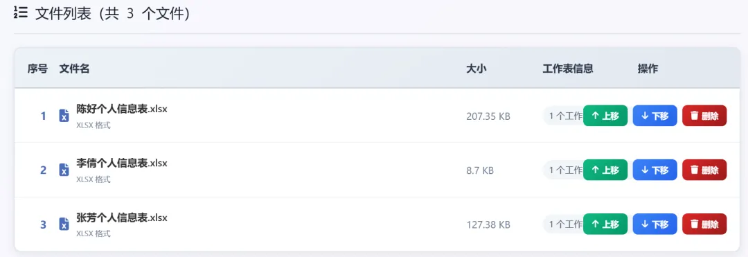 简单易用:获取工具后,双击exe文件运行即可,无需安装。操作便捷:添加完文件后,选择输出路径,点击按钮即可实现。界面友好:功能按键在界面上一目了然,功能分页,颜色分明。快速高效:耗费成百上千小时的工作量,几秒钟就能完成。功能强大:支持*.xlsx、*.xls等多种格式文件,多功能合并。安全可靠:工具完全离线,放心在内网处理密级文件,避免泄露。操作步骤