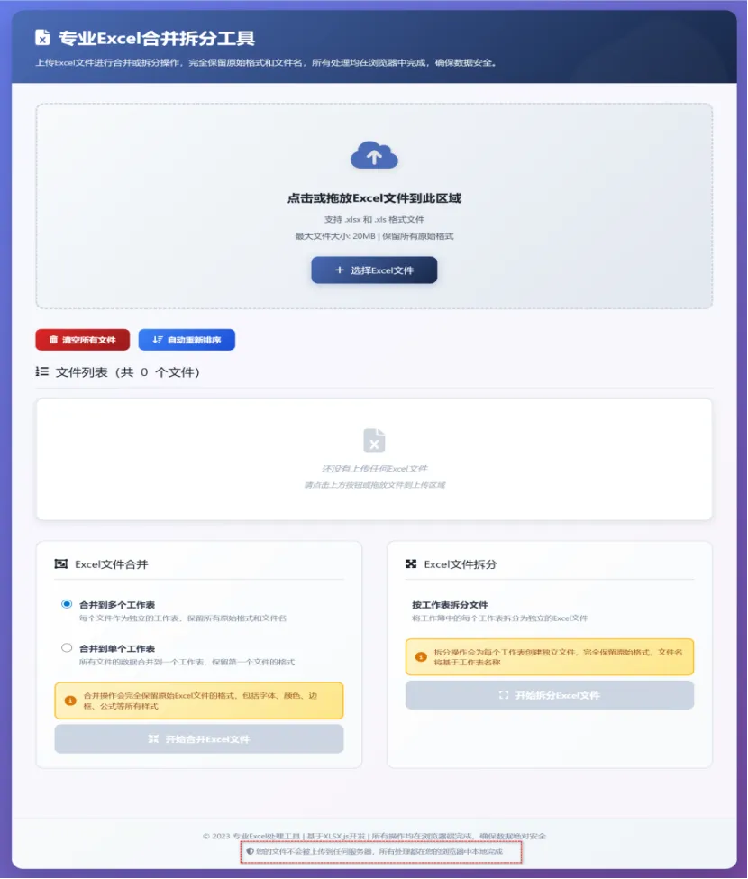 开发的excel_merge_split_html.exe工具,基于浏览器XLSX.js,实现快速将表格进行合并与拆分的功能,同时达到多样式兼容的效果。所有操作均在浏览器端完成,确保数据绝对安全,但您的文件不会被上传到任何服务器,所有处理都在您的浏览器中本地完成,该工具无需联网。效果展示