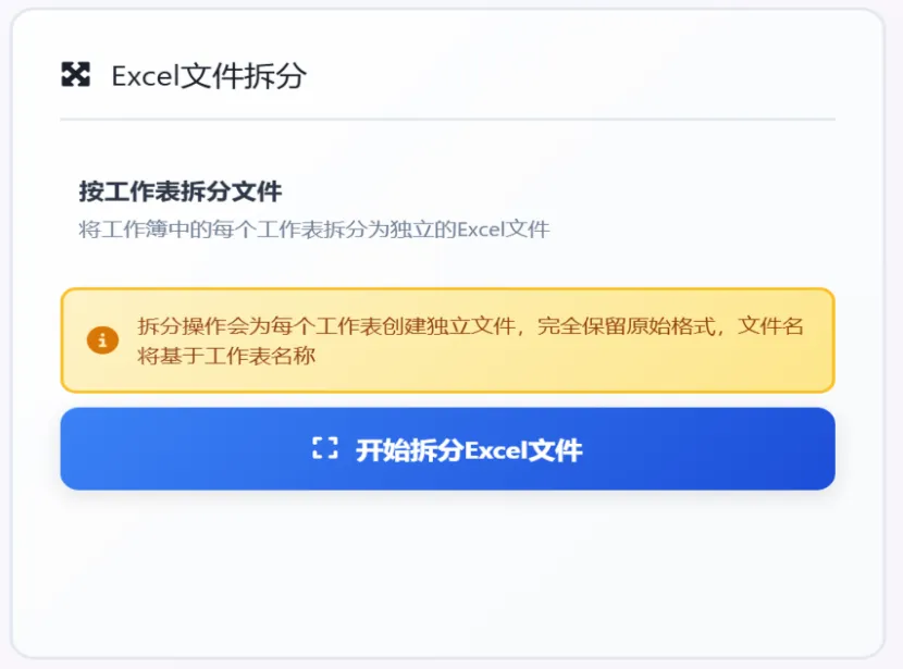 关注“办公神器集”公众号,回复“47”或“Excel合并拆分_浏览器版”即可免费获取该工具。请帮忙分享到朋友圈,大家一起共享好工具。另:文章尾部点击“喜欢作者”赞赏2.00,可以获取以下所有工具的下载链接。功能特点