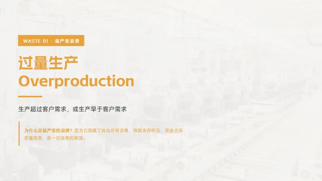在精益生产中,我们对"浪费"有严格的定义。浪费(Muda)是指任何不为客户创造价值却消耗资源的活动。