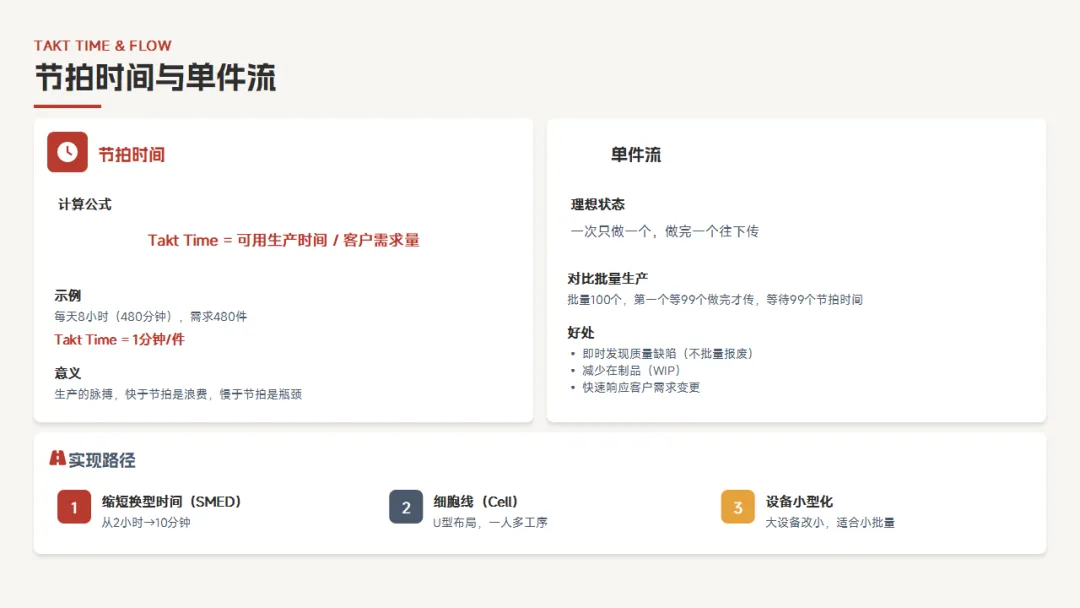 在批量观念上,传统思维认为批量越大单件成本越低,而精益思维主张小批量、快速流转(总成本更低)。