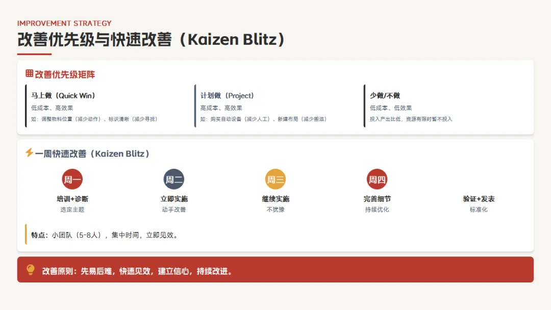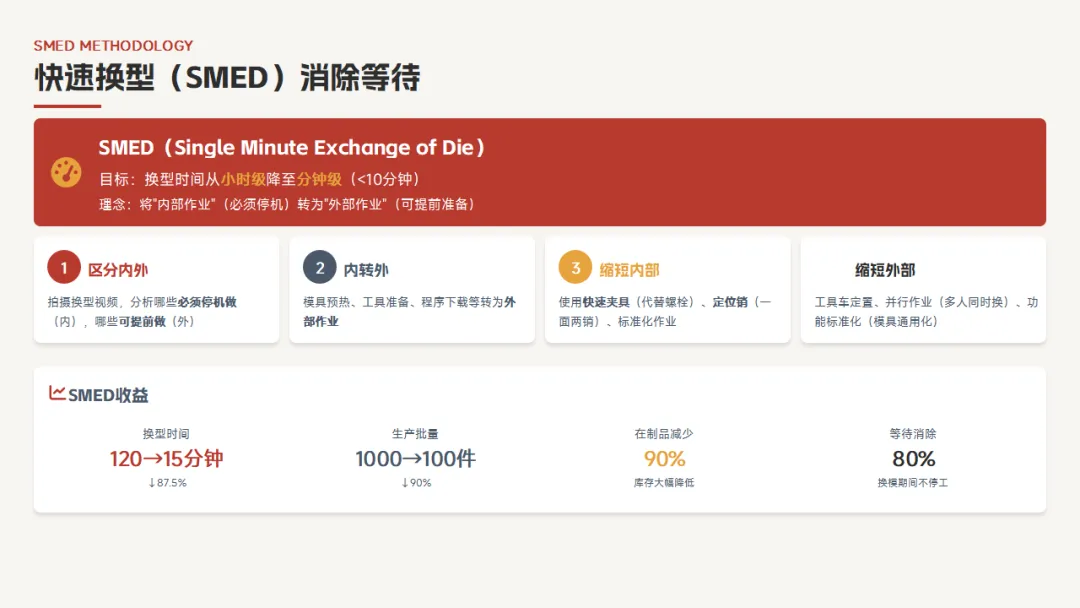第三,学会现场改善技巧,掌握ECRS、SMED、5S等实战改善手法。