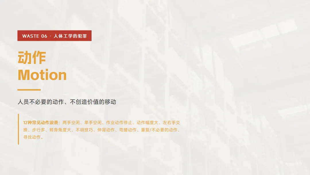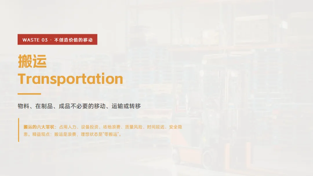 我们将围绕八大浪费展开,为了方便大家记忆,我们提供一个口诀:"等、搬、过、动、加、库、不、才",分别对应: