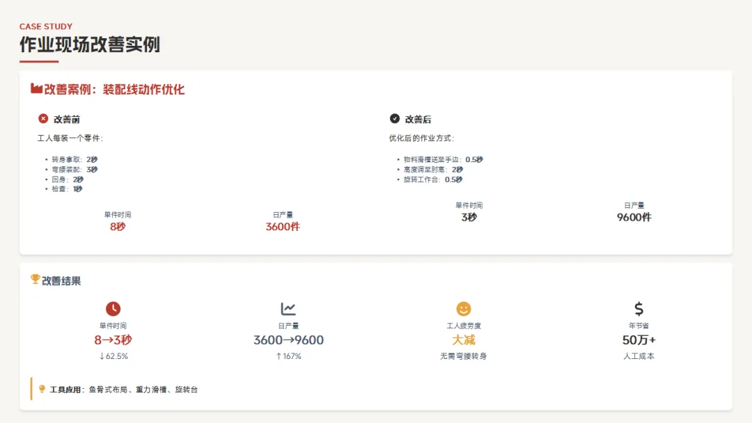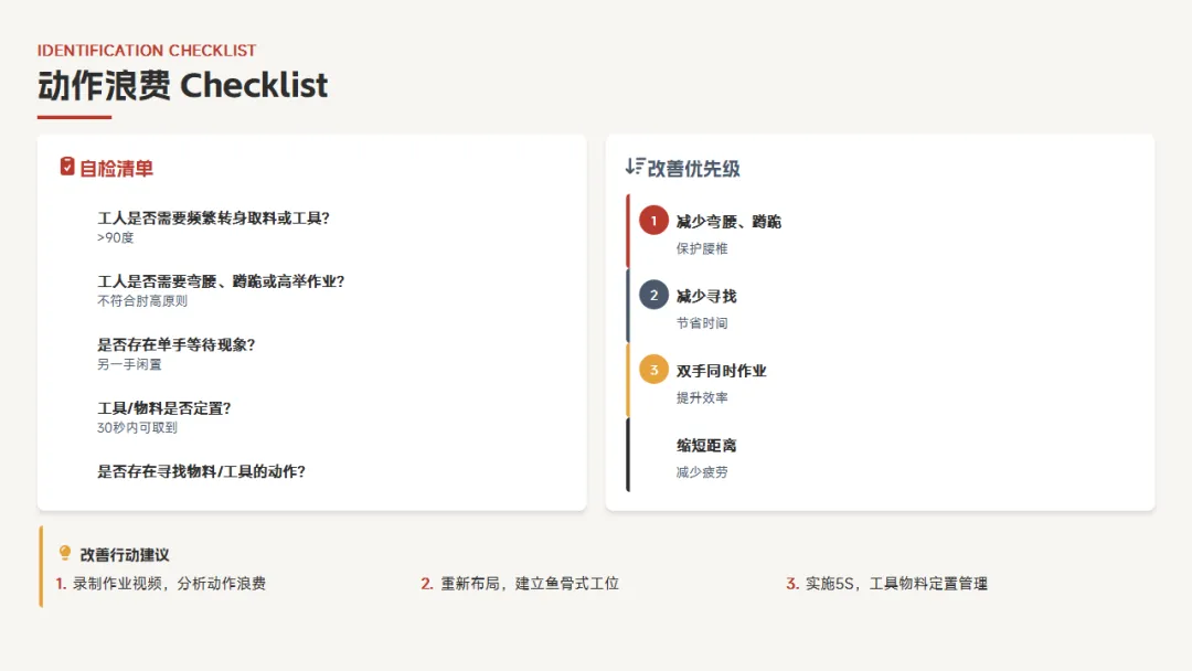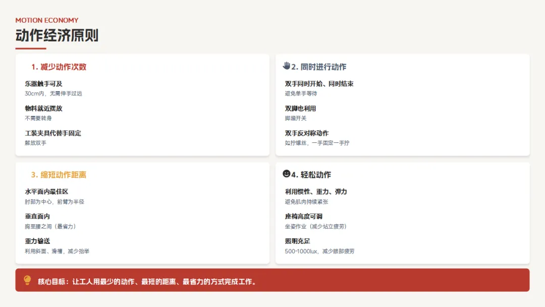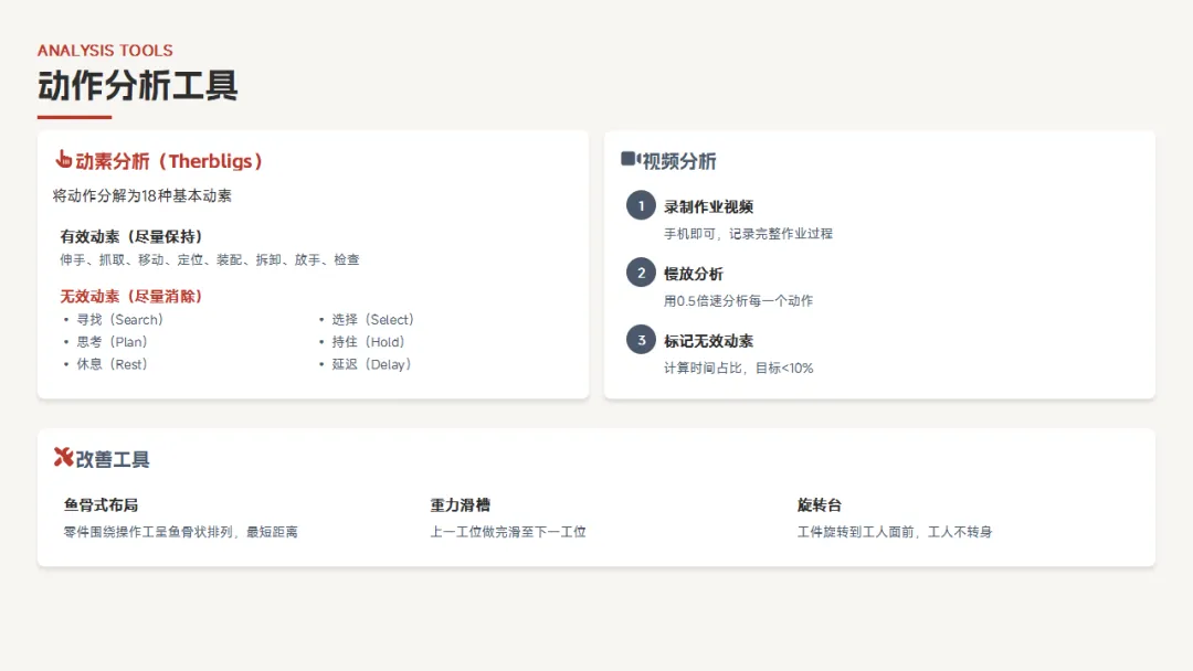 :录制作业过程,慢放分析隐藏的动作浪费。
