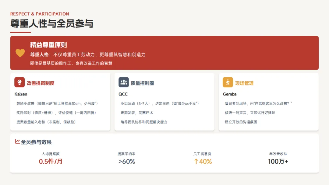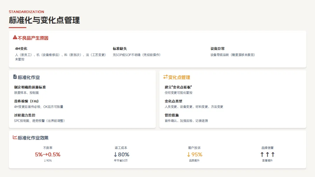 第四,构建持续消除机制,建立提案制度、QCC等长效改善体系。