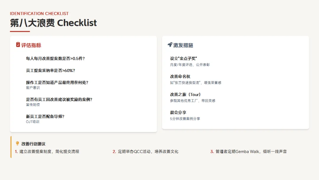 :用数据说话,而非传闻。量化浪费,才能针对性改善。