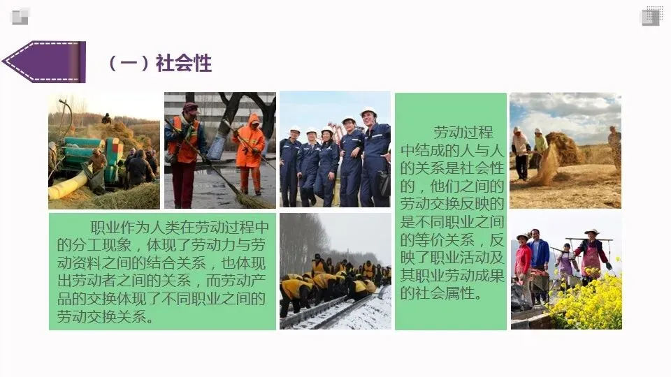 劳动过程中结成的人与人的关系是社会性的,他们之间的劳动交换反映的是不同职业之间的等价关系,反映了职业活动及其职业劳动成果的社会属性。