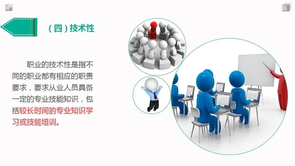 职业的技术性是指不同的职业都有相应的职责要求,要求从业人员具备一定的专业技能知识,包括较长时间的专业知识学习或技能培训。
