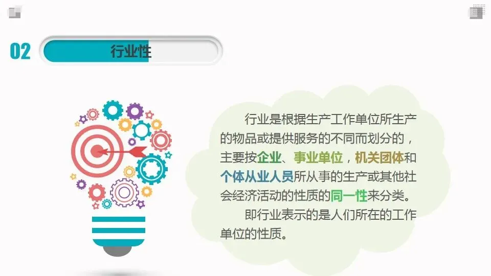 行业是根据生产工作单位所生产的物品或提供服务的不同而划分的,主要按企业、事业单位,机关团体和个体从业人员所从事的生产或其他社会经济活动的性质的同一性来分类。