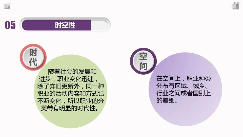 职业的特征与人类的需求和职业结构相关,强调社会分工;