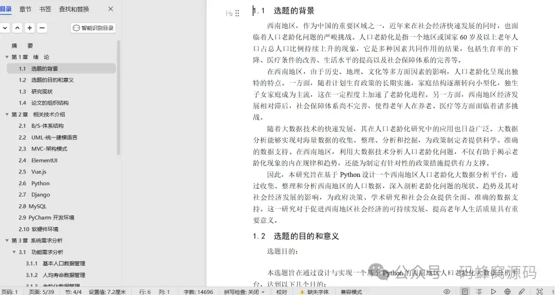 本课程演示的是一款Python爬虫人口老龄化大数据分析平台的设计与实现,主要针对计算机相关专业的正在做毕设的学生与需要项目实战练习的 Python学习者。