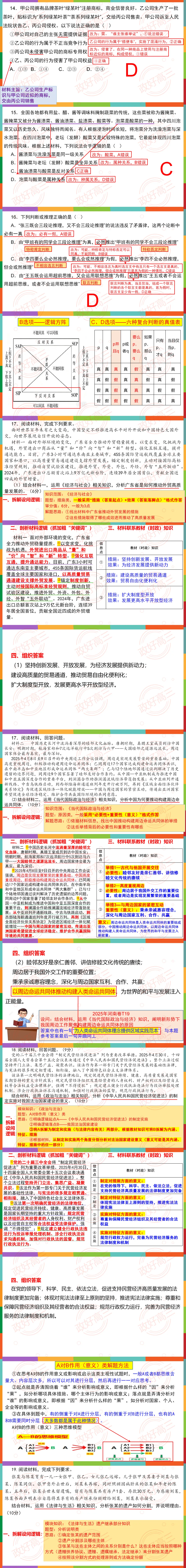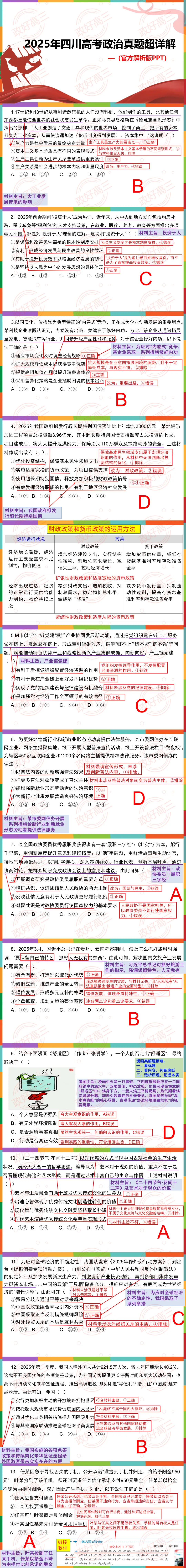 25年湖南高考政治官方答案超详解PPT