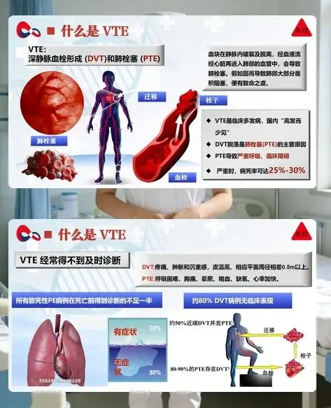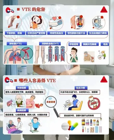 护理工作中,静脉血栓栓塞症(VTE)是潜伏在患者身边的 “隐形威胁”,它包括深静脉血栓(DVT)和肺栓塞(PTE),血栓堵塞血管不仅会导致肢体肿胀、活动受限,严重时还会引发呼吸循环障碍,病死率高达 25%-30%。今天和大家一起梳理 VTE 的预防与护理要点,不是单纯堆砌理论,而是把临床实用的技能和流程讲透,让咱们在照护中能精准识别、科学应对,为患者筑牢健康防线。
