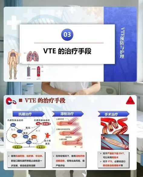 最后把护理的 “细节做实”。DVT 患者急性期要绝对卧床 10-14 天,抬高患肢高于心脏平面,严禁按摩以防血栓脱落;术后做好体位护理和血管通畅度监测。PTE 患者需保持安静环境,绝对卧床 2-3 周,给予吸氧、镇痛护理,严密监测生命体征和用药反应。出院时要做好指导,让患者掌握按时服药、自我观察出血倾向和定期复查的要点。