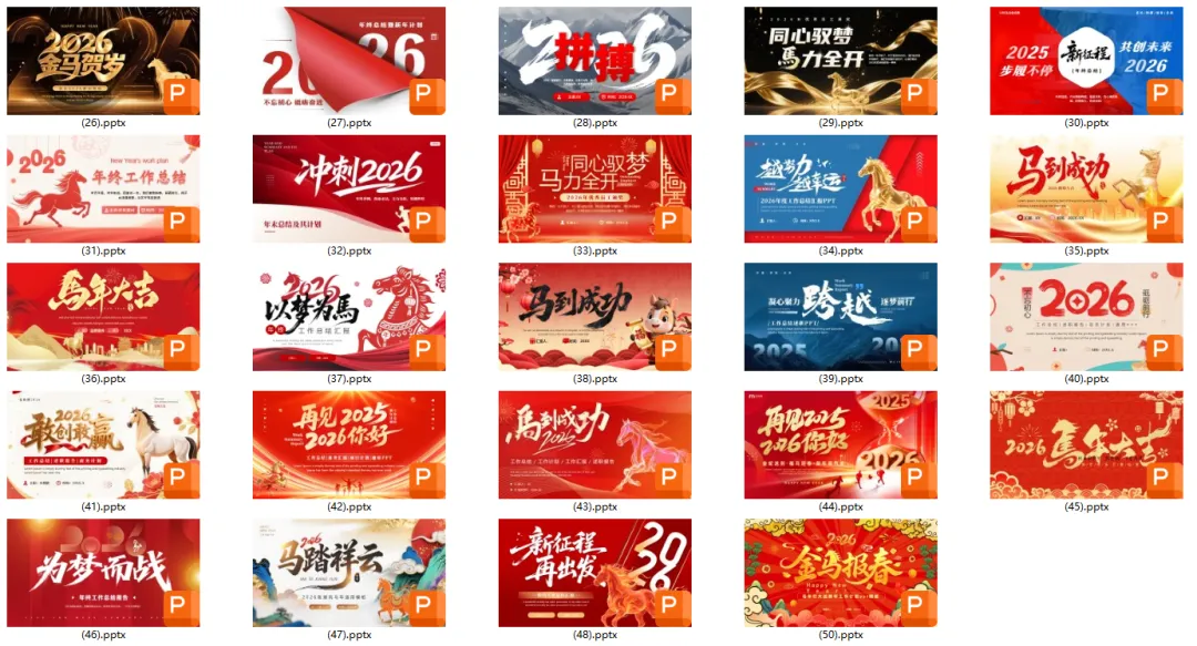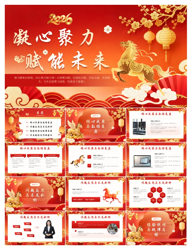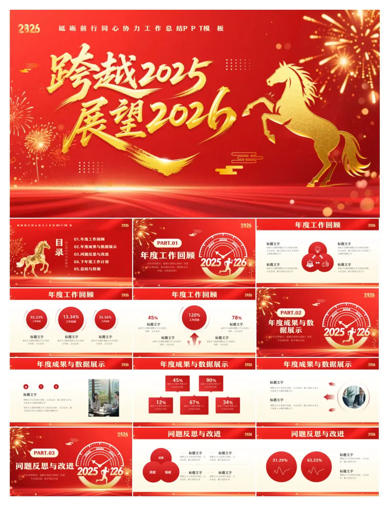 🐎2026马年专属工作计划 PPT 模板来啦!红金配色超大气,现成框架直接套,年终总结、新年规划一键搞定,让你的汇报既有年味又够专业,职场人必备神器!