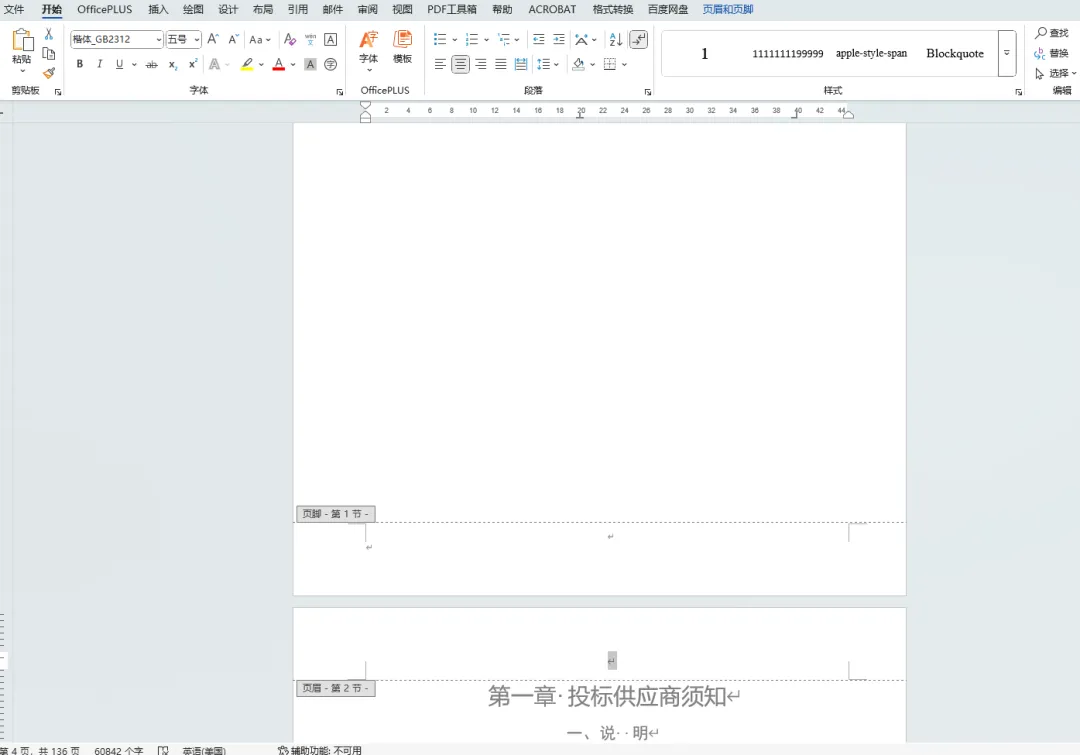 比如下图中,想要删除页眉及页眉中横线。
